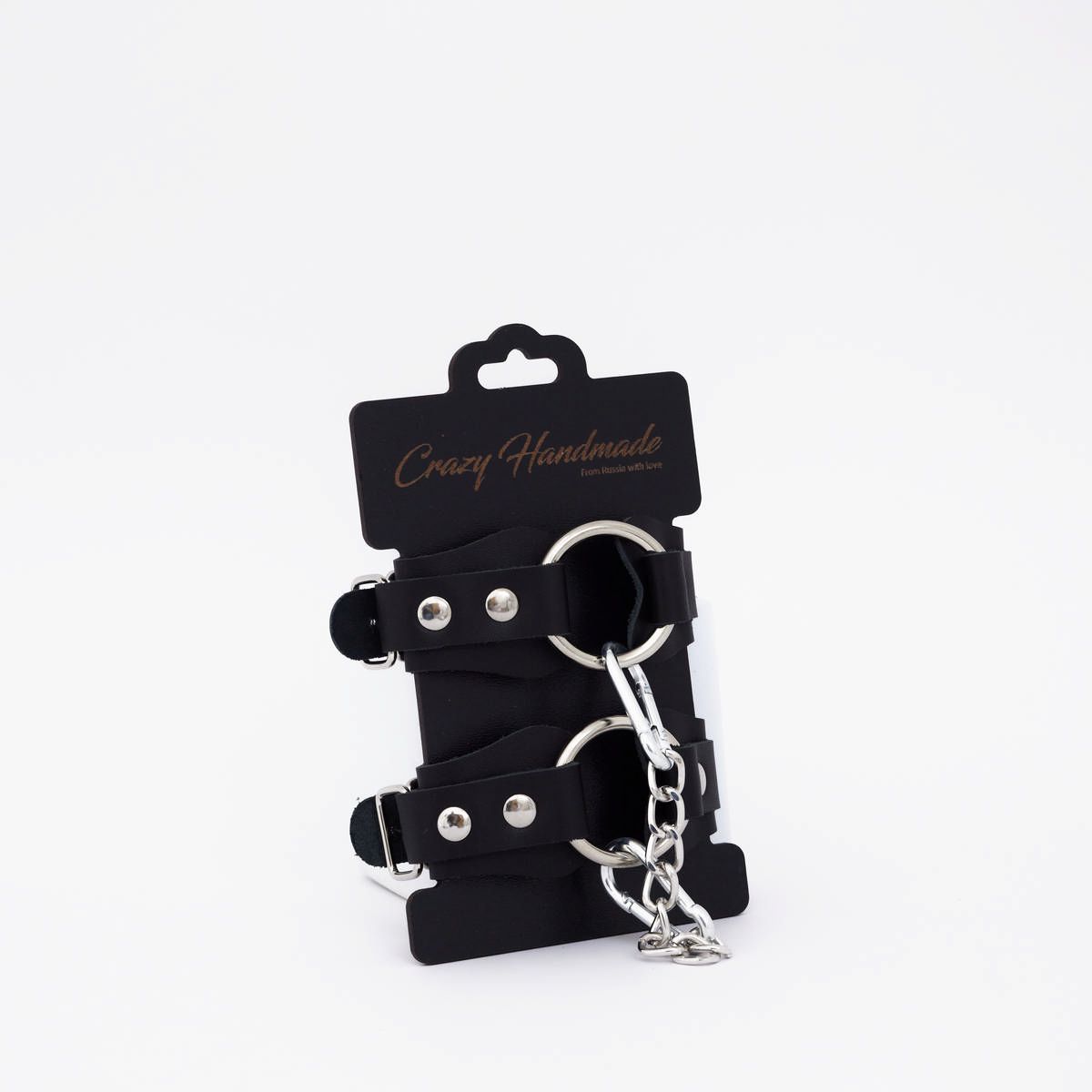 Черные кожаные наручники с кольцом - lovestoryshop.ru