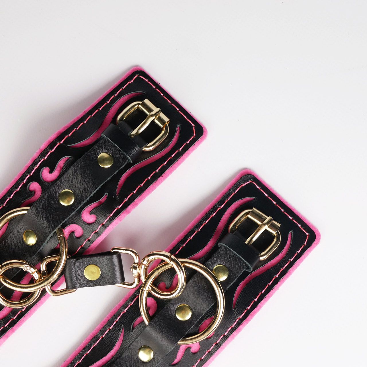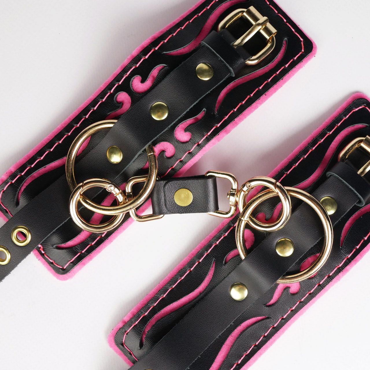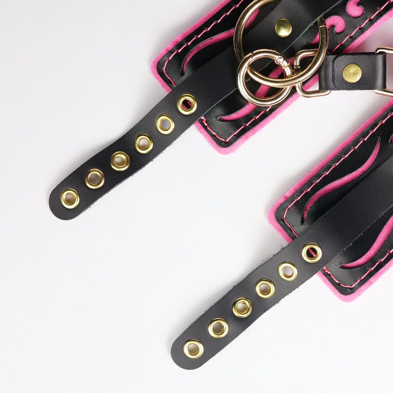 Изделие выполнено из высококачественной натуральной кожи , которая мягко облегает, обеспечивая комфорт даже при длительном использовании. Особое внимание уделено деталям: надежная стальная фурнитура с золотистым покрытием добавляет конструкции прочности и нотку роскоши, а мягкая подкладка розового цвета с контрастной строчкой делает эти наручники по-настоящему уникальными и запоминающимися.