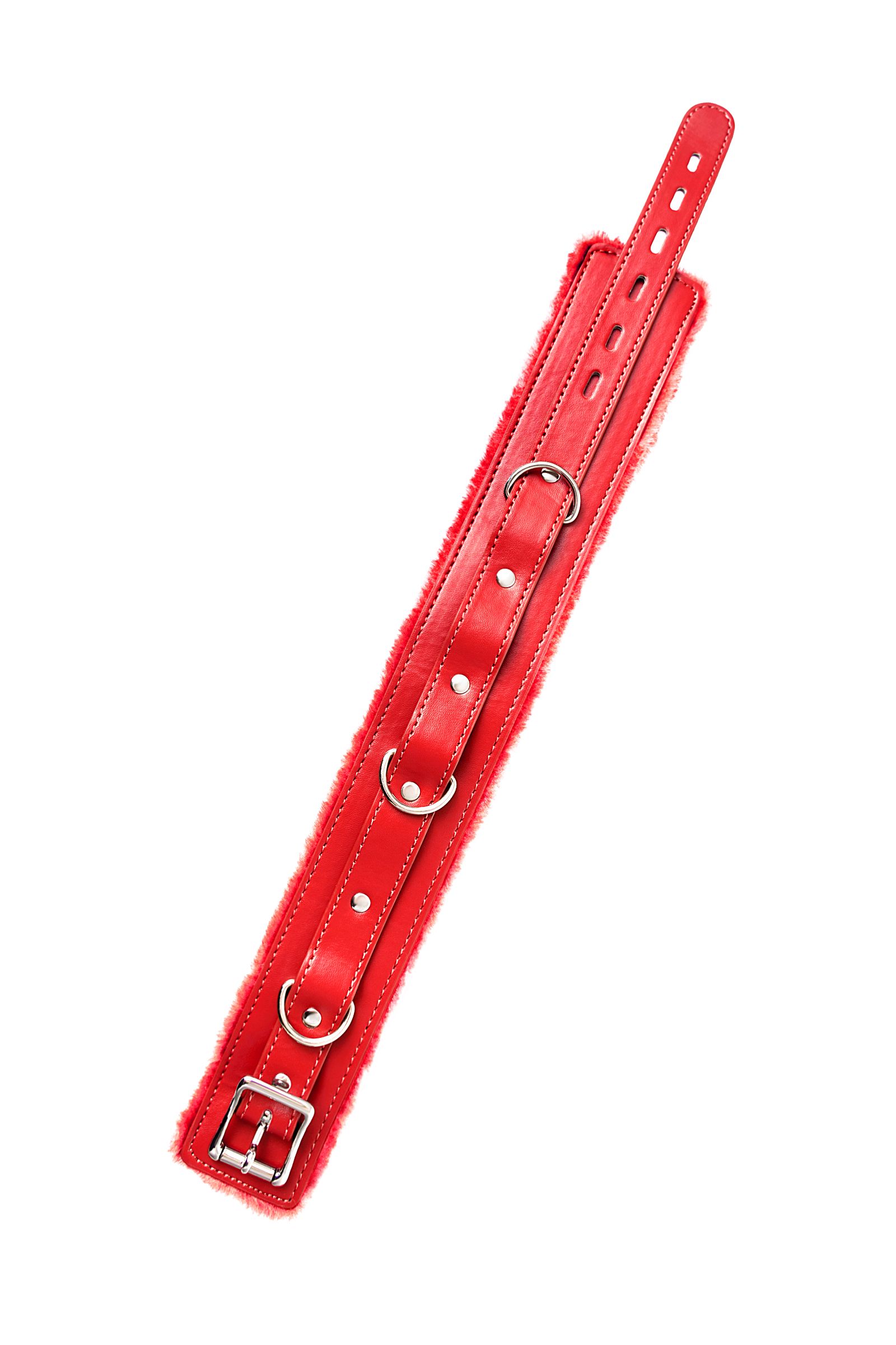 Ошейник яркого красного цвета с металлической отделкой говорит не об агрессии. Этот ошейник говорит о страсти, которую можно проявить, но только с разрешения Доминанта. Подкладка из искусственного меха немного смягчит давление на шею, поэтому выбор этого ошейника можно считать проявлением любви и заботы Доминанта к своему рабу. Ведь в мире БДСМ ошейник — это не только своеобразный ограничитель свободы, но и символ принадлежности своему Хозяину. Пристегивающийся по центру поводок заставляет следовать за Хозяином, куда бы тот ни пошел. Размер регулируется с помощью металлической пряжки, которая служит одновременно декоративным элементом, и добавляет образу немного хардкора. Длина ошейника - 43,5 см, ширина - 5,5 см.
