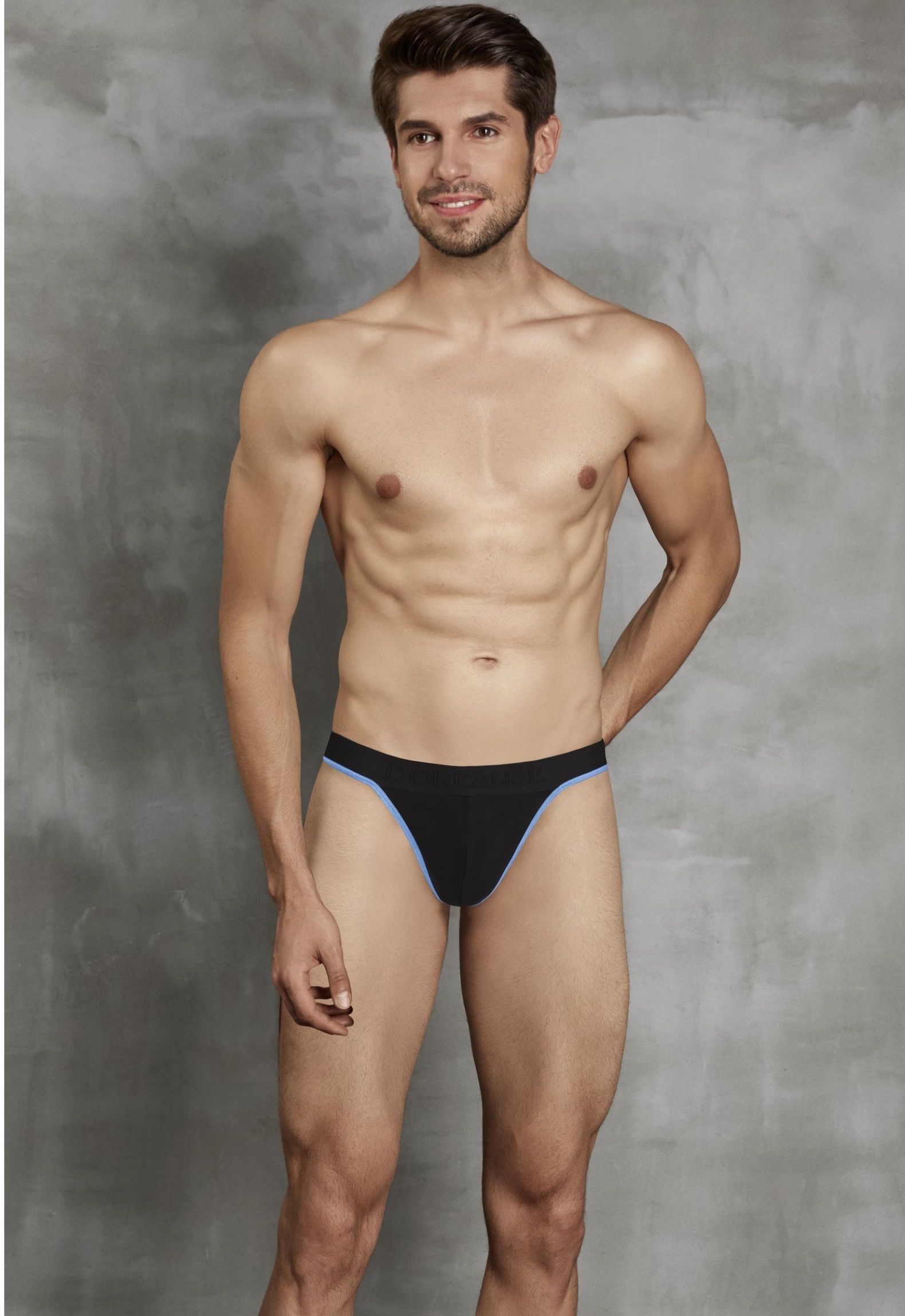 ОписаниеМужские стринги на пришивной резинке от «Doreanse». Края передней панели, низ пришивной резинки и задняя лямочка украшены контрастным эластичным кантом. Передняя панель однослойная, без подкладки.