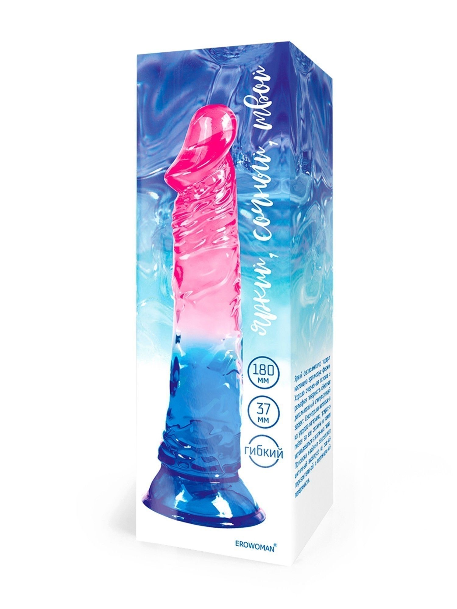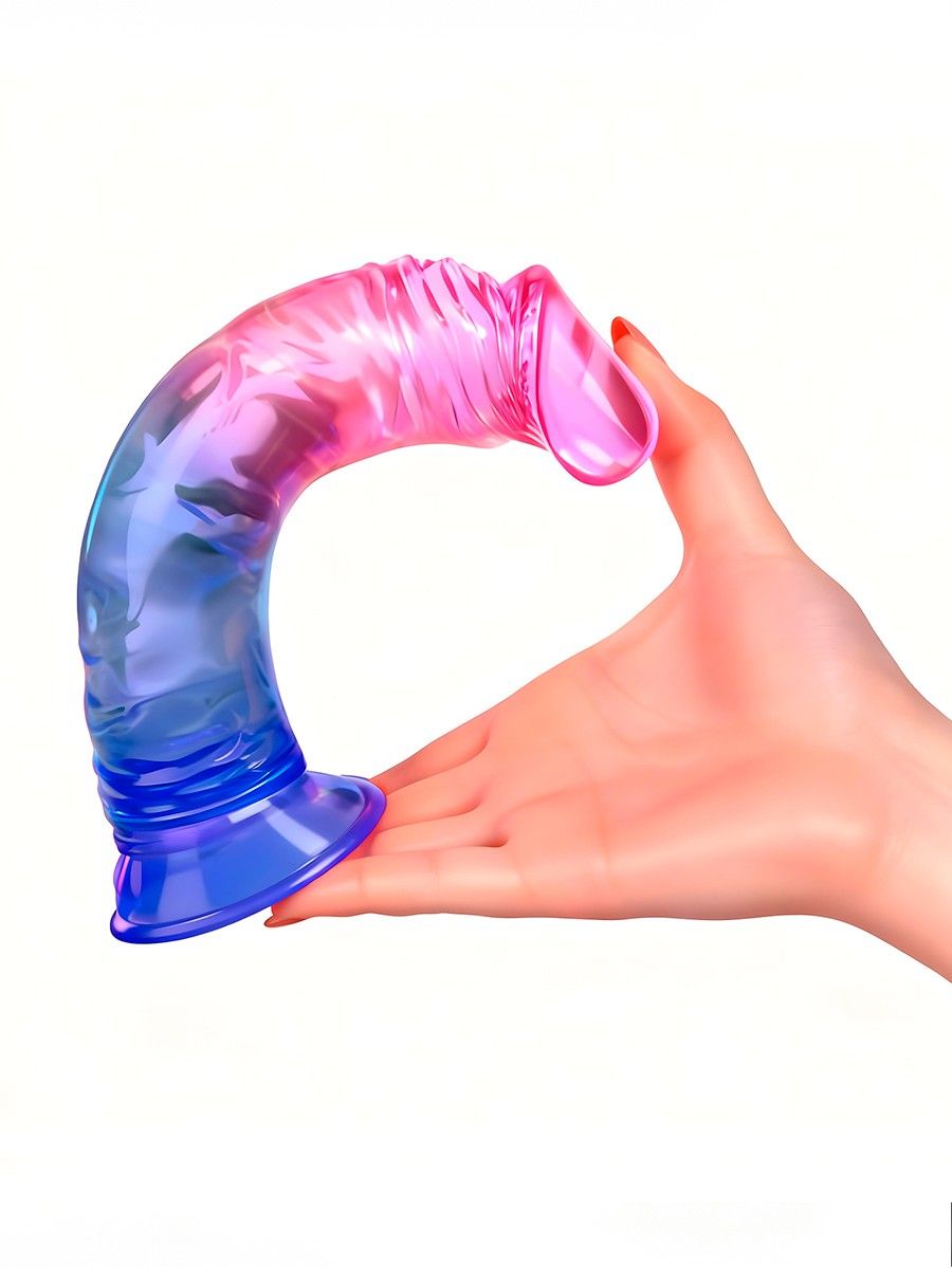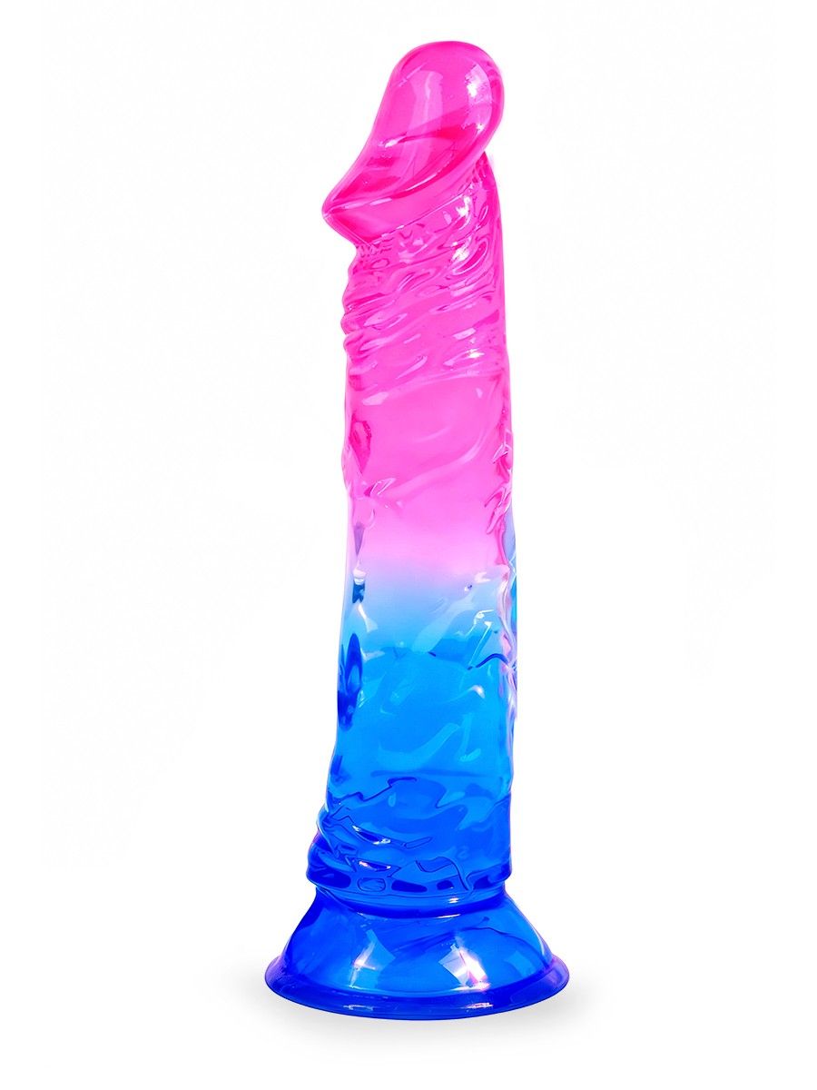 Яркий розово-синий фаллоимитатор с присоской - lovestoryshop.ru