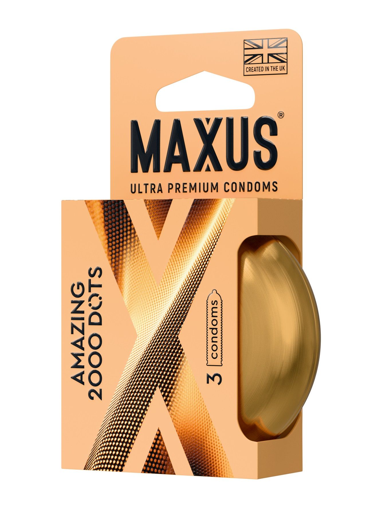 Точечные презервативы MAXUS 2000 Amazing Dots с железным кейсом - 3 шт.