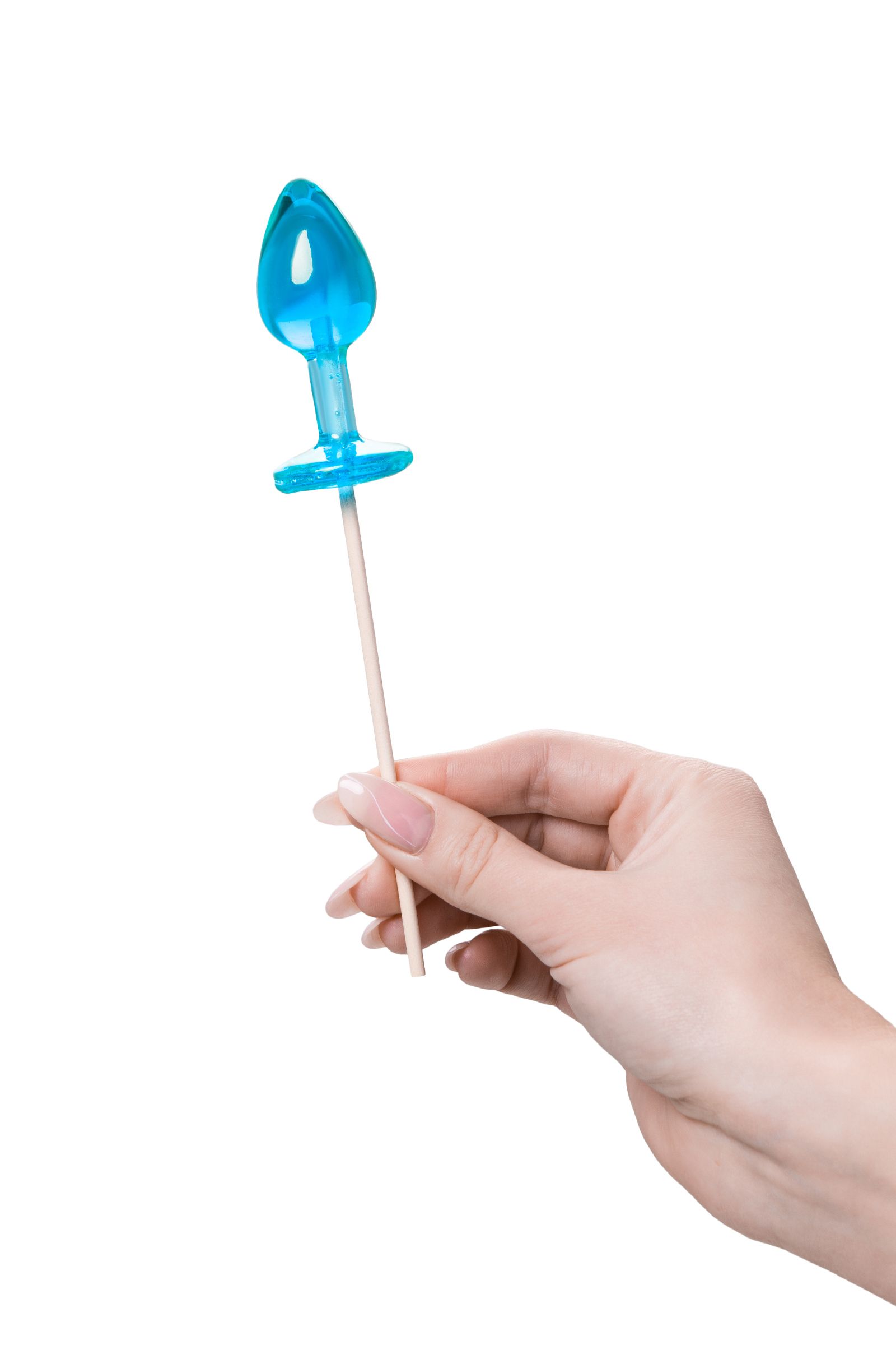-----Голубой леденец в форме анальной пробки со вкусом блю кюрасао - 29 гр.