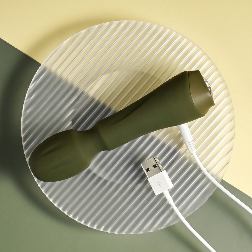 Мини-вибромассажёр цвета хаки Heartfelt - 13,4 см.