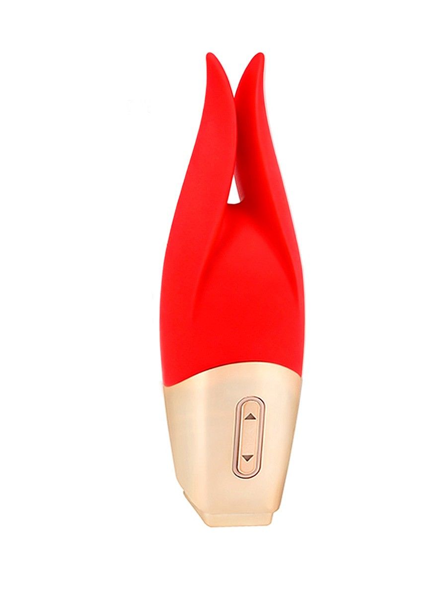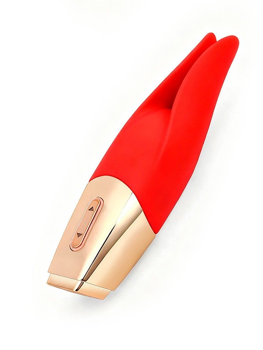 Красный мини-вибратор с раздвоенным кончиком - 12,3 см.