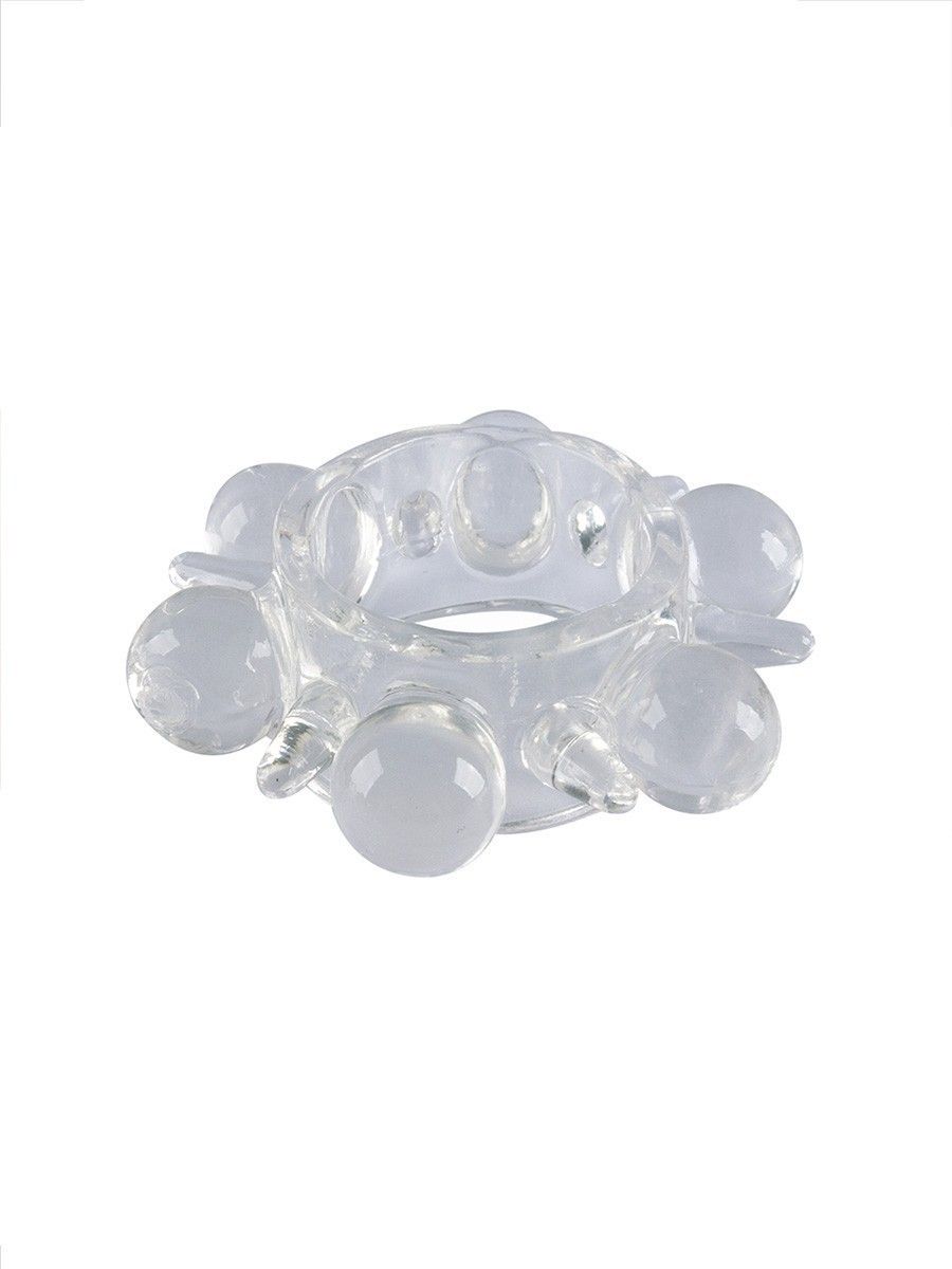 Прозрачное эрекционное кольцо с шариками и шипами