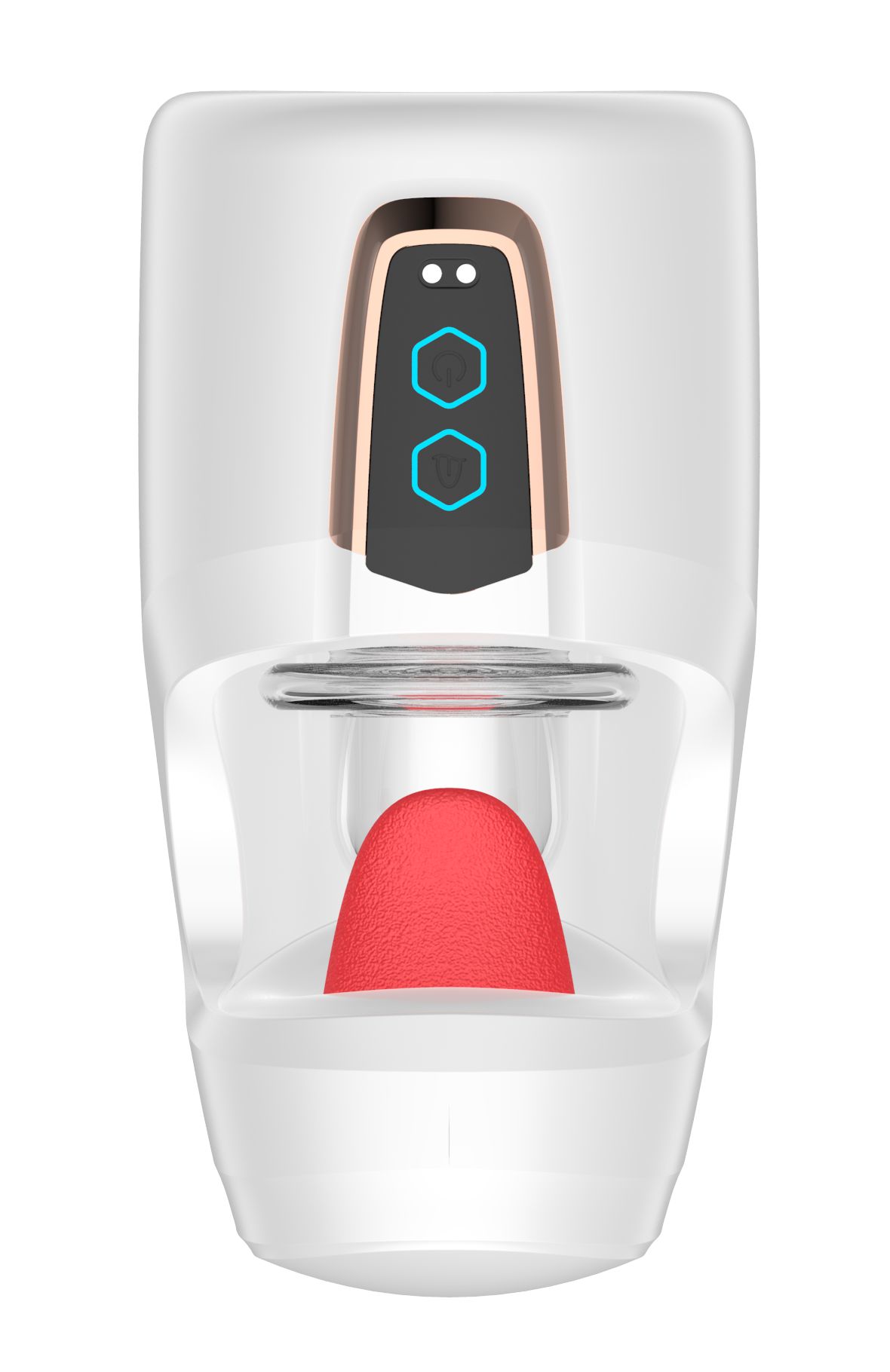 Белый мастурбатор с язычком и возвратно-поступательными движениями. Мягкий и эластичный язычок приласкает головку полового члена. 10 режимов фрикций позволят выбрать ритм по настроению.