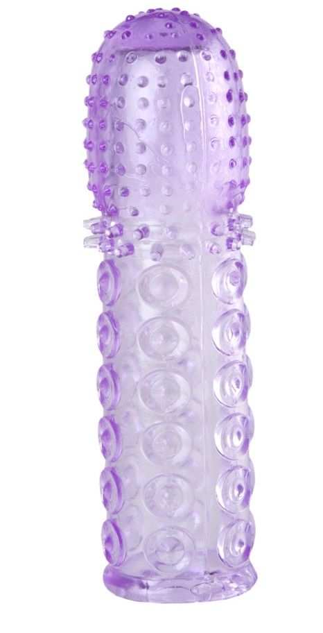 Насадка гелевая фиолетовая с точками, шипами и наплывами - 13,5 см. - lovestoryshop.ru