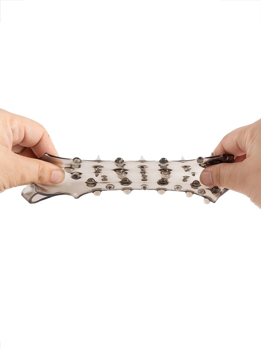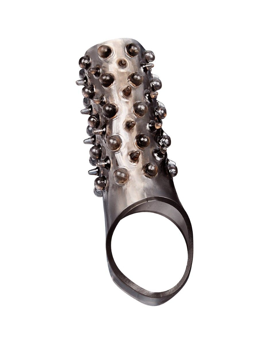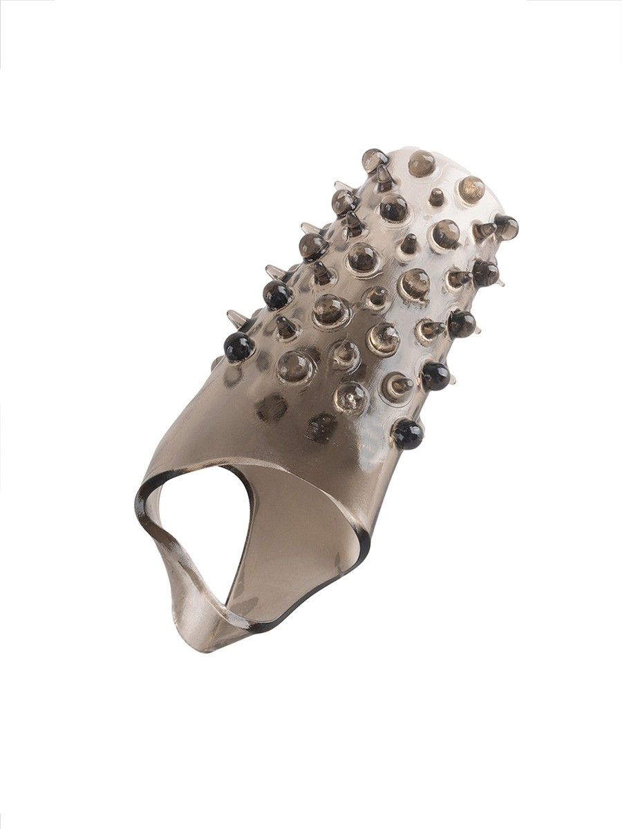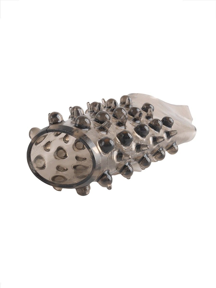Дымчатая насадка на пенис с шипами и выпуклостями - 12,5 см.