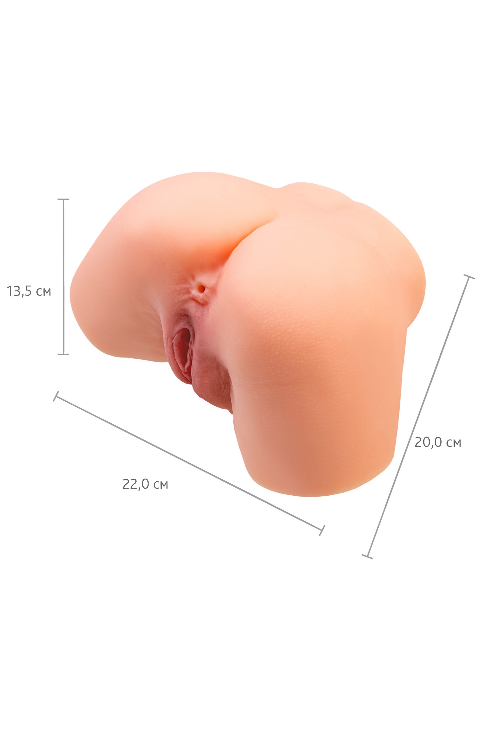 Манящая попка весом 3,7 кг - то, что приятно ощущать в сильных мужских руках.Шелковистый материал напоминает мягкую женскую кожу.Для секса предусмотрено 2 анатомических отверстия с дополнительной стимуляцией: вагинальное и анальное. Размеры - 22 х 20 х 13,5 см.