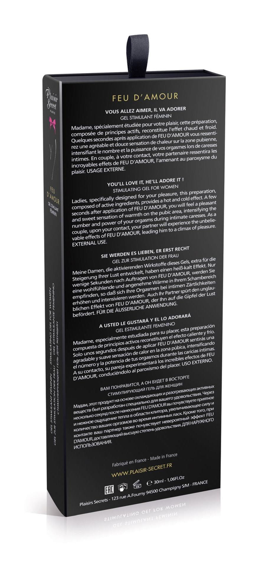 Французский гель для клиторальной стимуляции Feu d’Amour. Этот продукт был разработан специально для женщин. Содержит специальные компоненты, которые увеличивают чувствительность эрогенных зон и делают каждое прикосновение нежнее и ярче. Гель обладает быстрым эффектом. При нанесение на клитор вы почувствуете приятное и нежное ощущение тепла, увеличивающее силу и количество оргазмов. Feu d’Amour создан из компонентов высочайшего качества и абсолютно безопасен для здоровья. Совместим с секс-игрушками из любых материалов и латексом.