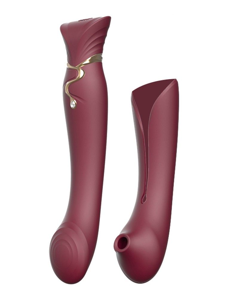 Бордовый вибромассажёр с дополнительной насадкой Queen - 21,6 см.