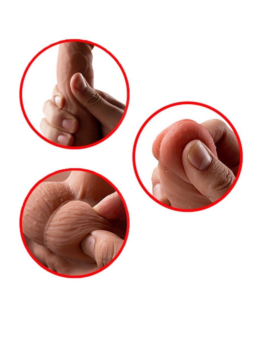 Секс-игрушка выглядит максимально реалистично. Половой член может наклоняться в разные стороны, позволяя использовать изделие в разных позах. Внутри пениса находится жёсткий стержень. Сам интимный аксессуар не имеет внутреннего каркаса, прекрасно мнётся и сжимается. Яркая коробка наглядно демонстрирует все возможности девайса.