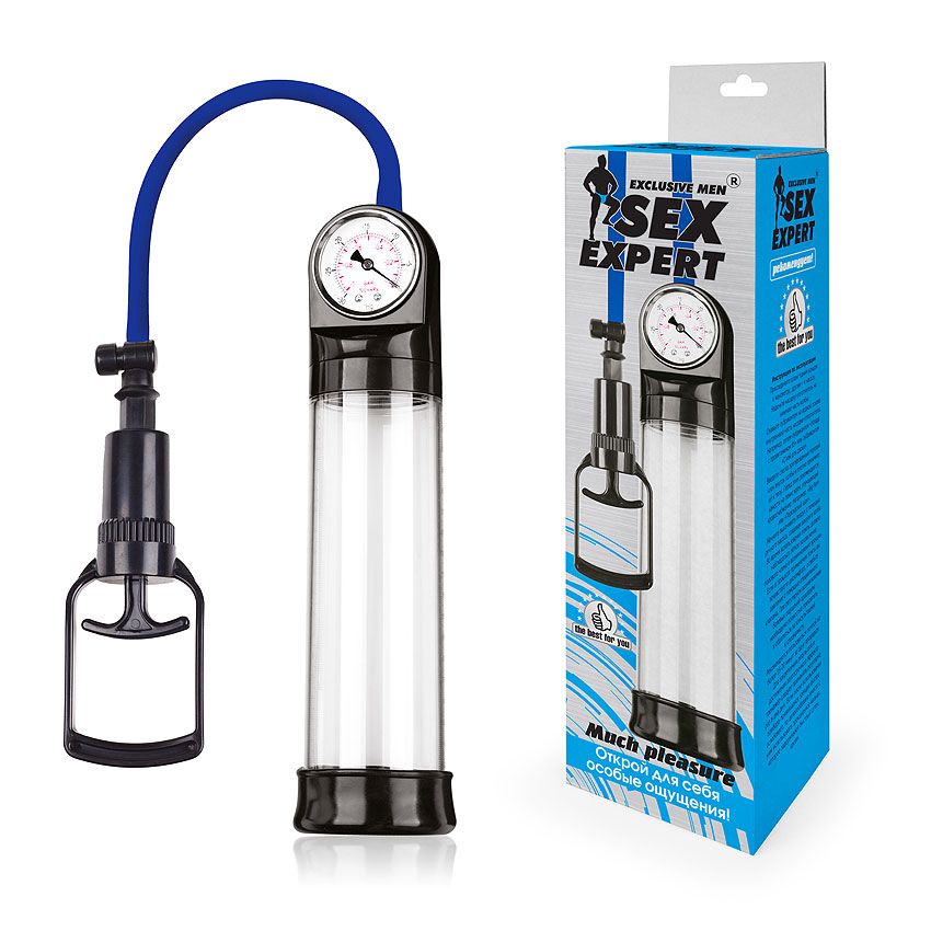 Вакуумная помпа Sex Expert даёт потрясающий эффект:- ускоряет кровообращение, обеспечивая прилив крови к половому члену,- повышает тонус мышц и эластичность тканей пениса, способствуя увеличению его размеров, дарит великолепную эрекцию, придаёт уверенности в себе, расширяет сексуальные возможности. Для достижения наилучшего результата рекомендуется время от времени менять уровень давления и чередовать применение интимного аксессуара с ручным массажем. Манометр, показывающий уровень давления в колбе и прочная пластиковая колба с разделительной шкалой, помогают отслеживать изменения длины полового члена, а специальная насадка-уплотнитель, позволяющая плотно прижимать помпу к телу, который создаёт сильный вакуумный эффект внутри колбы.