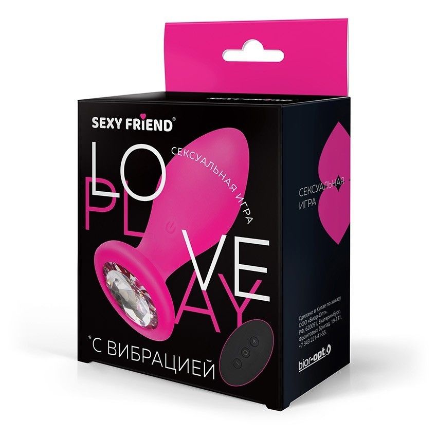 Розовая вибровтулка с прозрачным кристаллом и пультом ДУ - 8,5 см. - lovestoryshop.ru