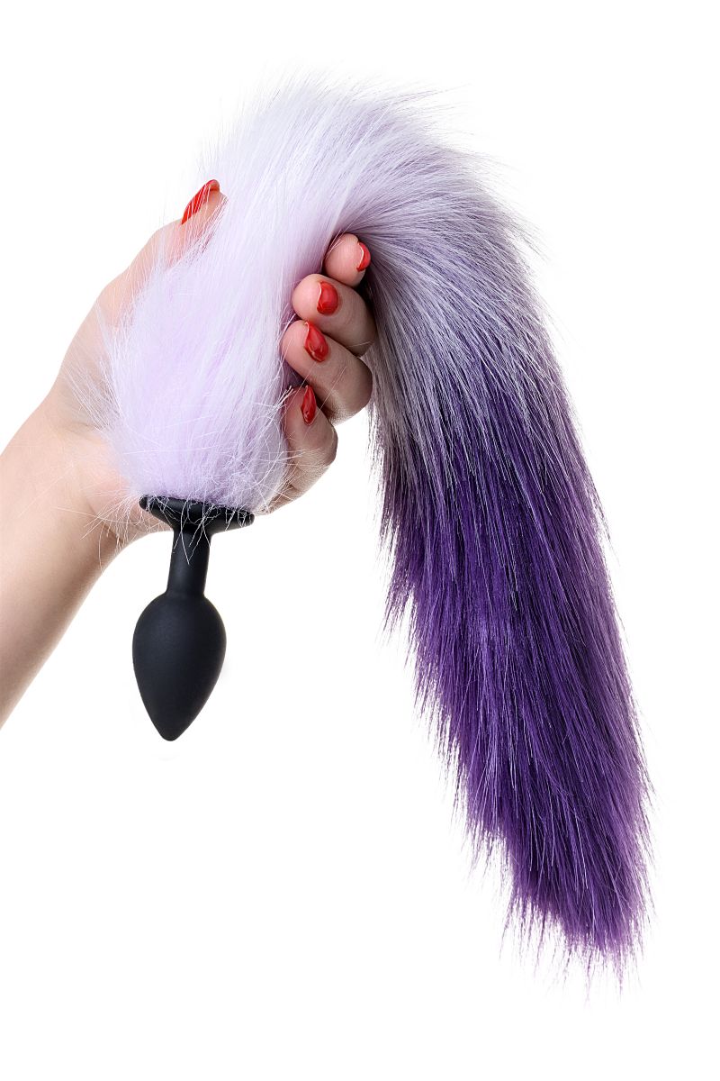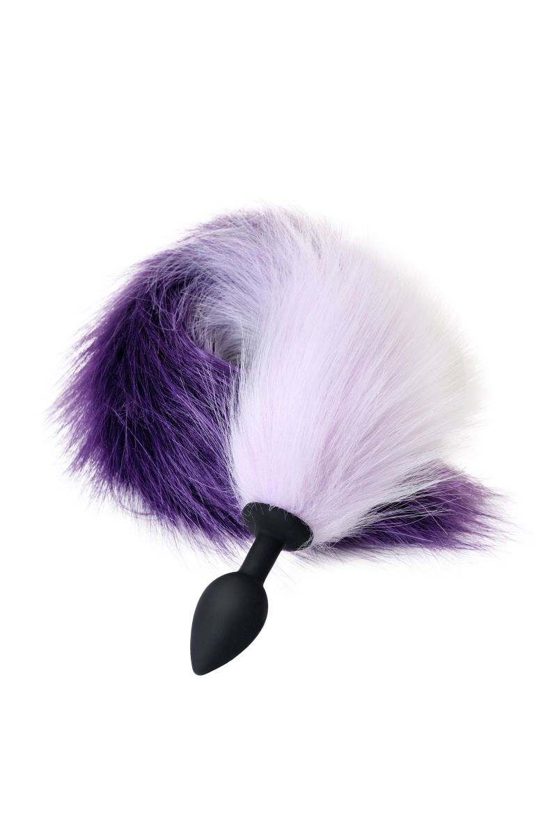 Силиконовая анальная пробка с бело-фиолетовым хвостом Popo Pleasure S