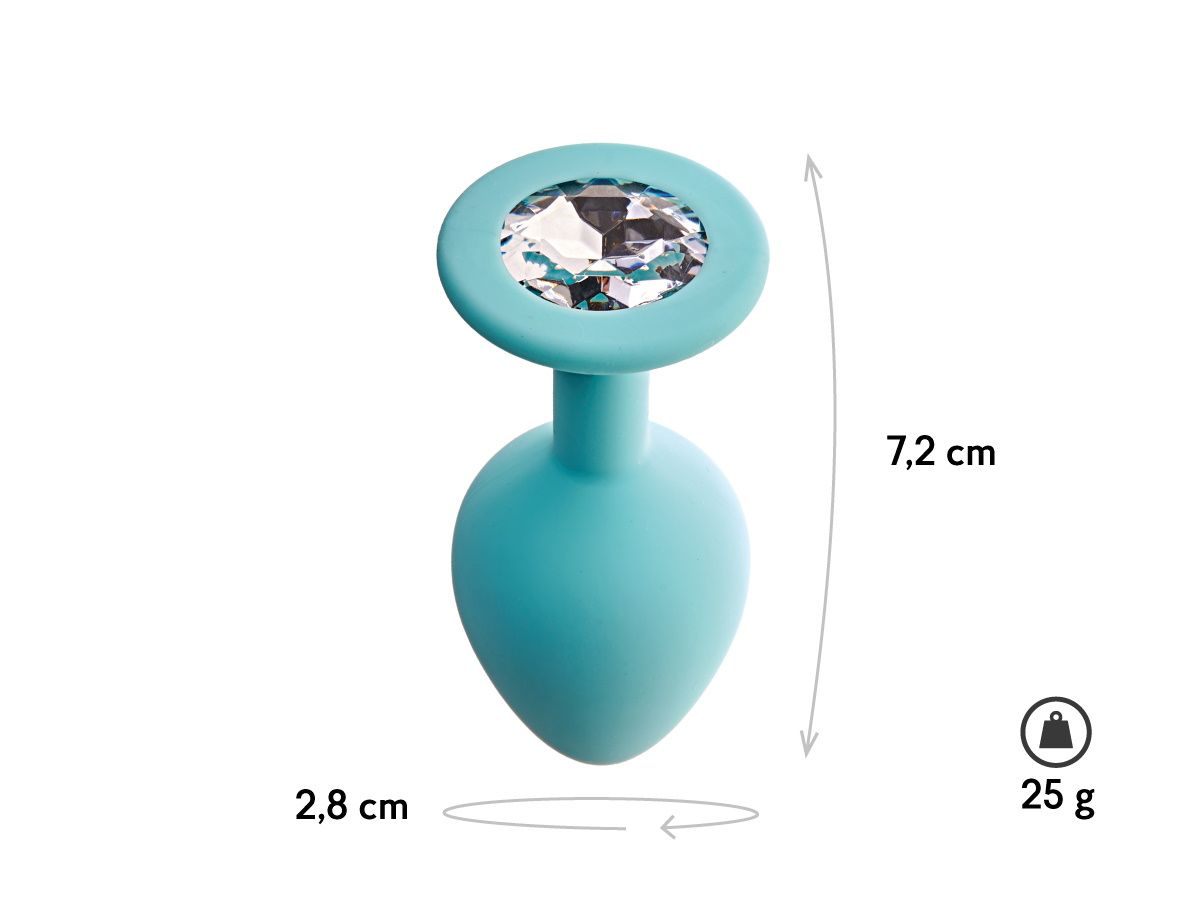 Аквамариновая анальная пробка с прозрачным кристаллом Gamma S - 7,2 см.