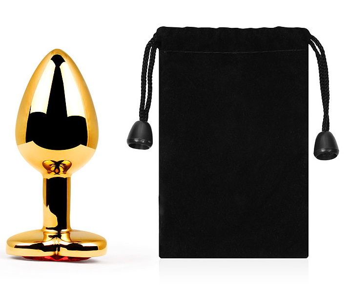 Золотистая анальная пробка с красным стразом-сердечком - 8 см.