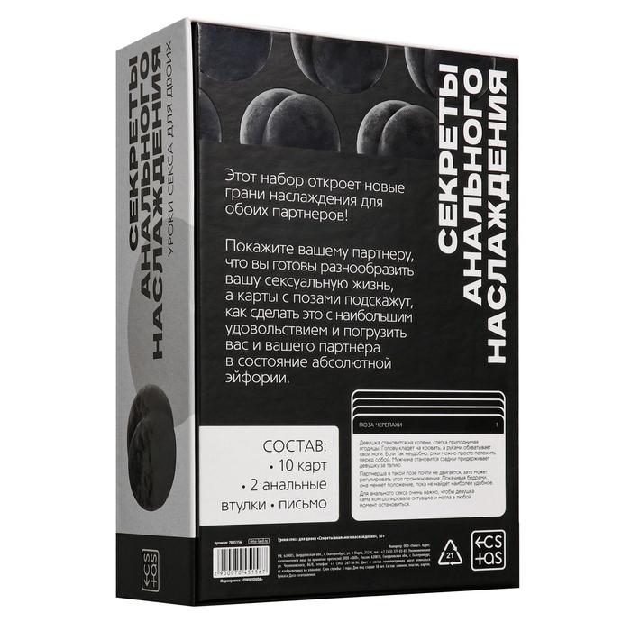 Покажите любимому мужчине, что готовы разнообразить сексуальную жизнь, а игра подскажет, как это сделать правильно. В комплекте: 10 карт, анальные пробки (размер S и M), письмо.