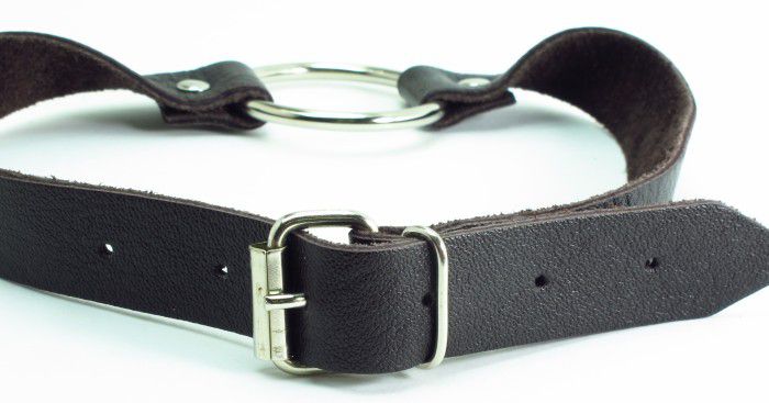 Коричневый кожаный кляп с металлическим кольцом