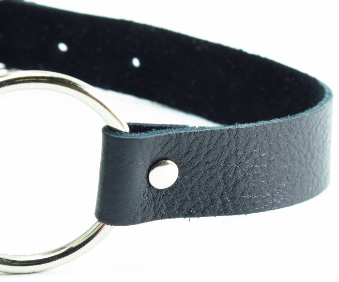 Черный кожаный кляп с кольцом. Застегивается сзади на пряжку.