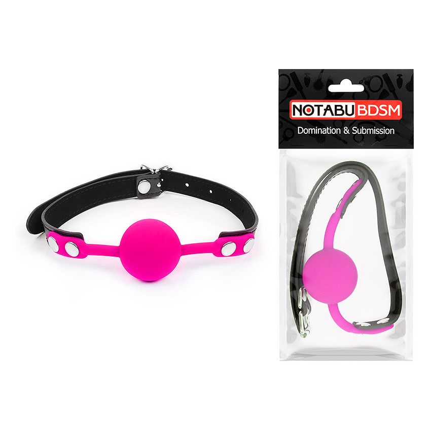 Розовый кляп-шарик с черным регулируемым ремешком