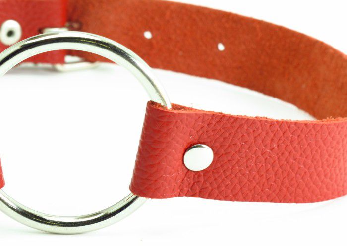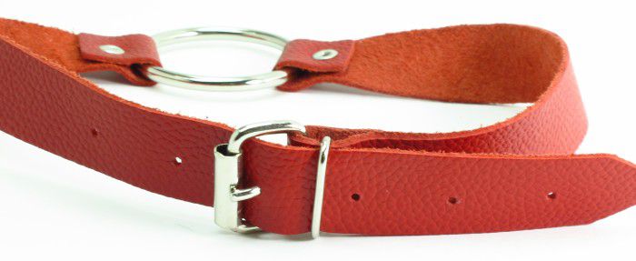 Красный кожаный кляп с кольцом. Застегивается сзади на пряжку.