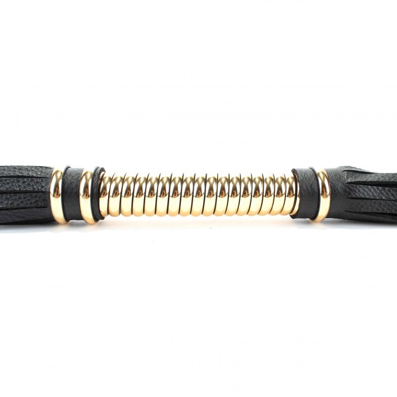 Чёрная плетка из натуральной кожи с золотистой отделкой рукояти - 60 см.