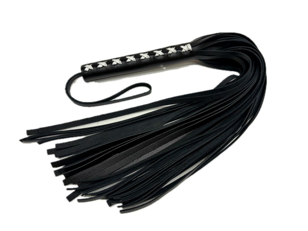 Плеть из натуральной кожи Sex Game - уникальная модель, выполненная из цельного куска гладкой натуральной кожи высокого качества, в классическом черном цвете. Плеть очень пышная и богатая, в ней 50 хвостов! На рукоятке находится плетение, выполненное белой кожей, что придает особый шарм, Благодаря своей цельной конструкции, данная плеть прослужит Вам долго, хвосты не оторвутся и сохранят свой благородный вид, аксессуар очень надежный и красивый. Для удобства на рукоятке имеется кожаная петелька. Длина хвостов - 40 см.