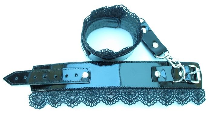 Изысканные чёрные наручники с кружевом - lovestoryshop.ru