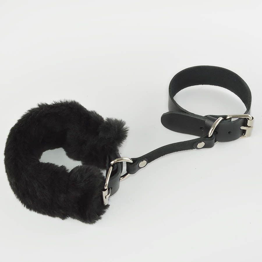 Ремешки наручников изготовлены из натуральной кожи и декорированы съемным искусственным мехом.