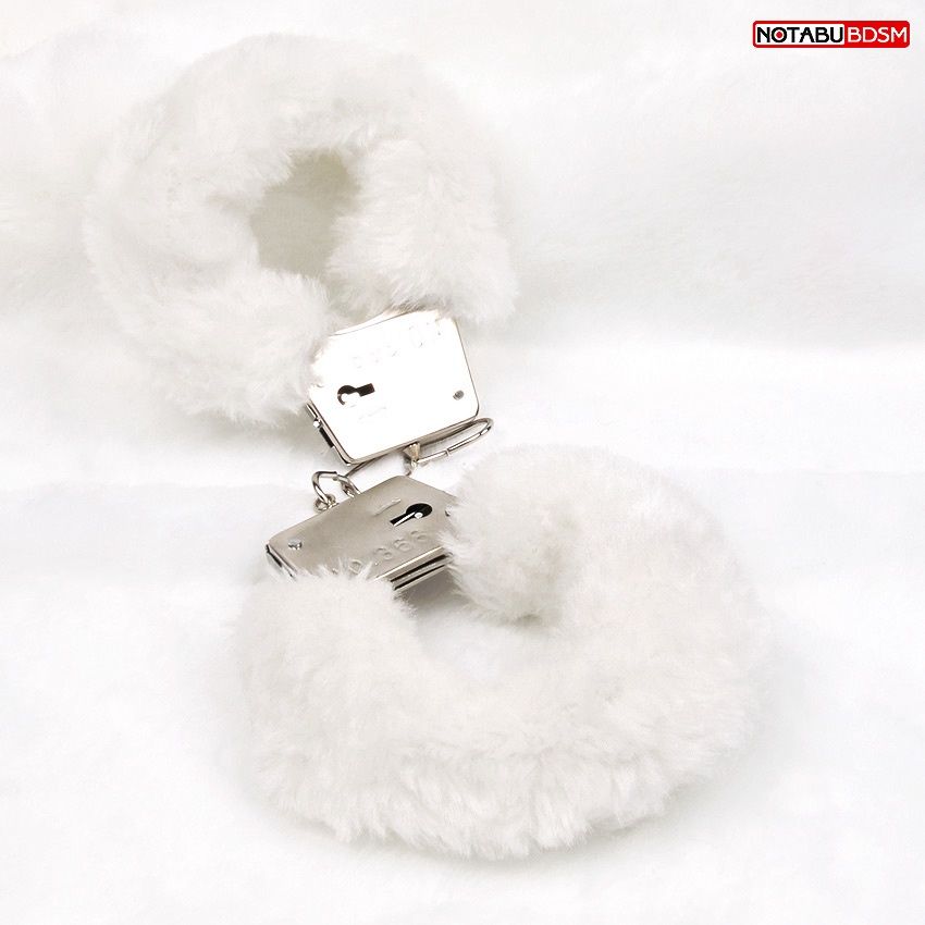 Белые меховые наручники на сцепке с ключиками