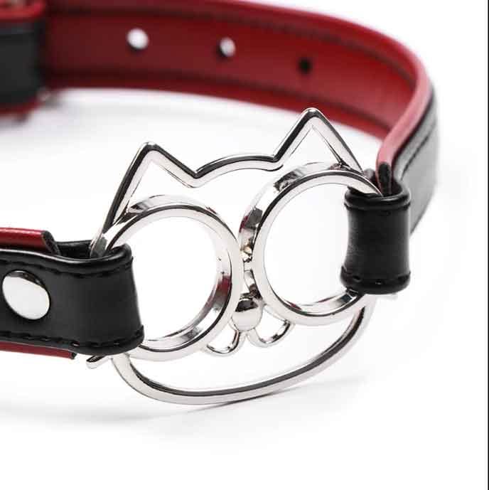 Ошейник с регулируемой застежкой. Декорирован металлическим декором - мордочкой кошки. Ошейник используется как символ подчинения, признания отношений и полного доверия. Наденьте ошейник на шею и с помощью пряжки зафиксируйте ремень. Не следует затягивать ошейник слишком туго.