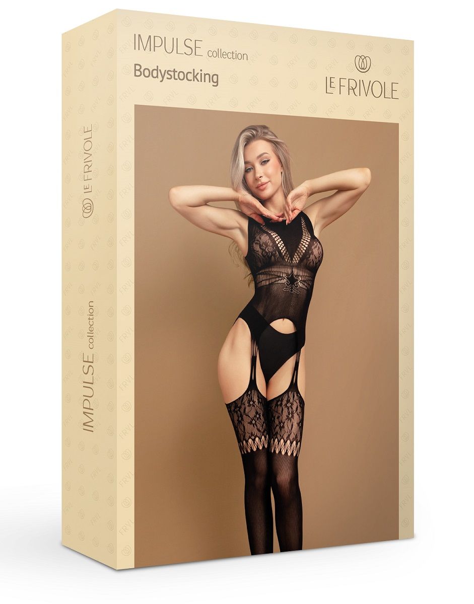 Закрытая открытость, сокрытые ключицы, обрамленная кружевом грудь. Динамика узоров сетки черного цвета ведет взор вниз, к бедрам, окаймленными цветочным узором, имитирующим чулки. Пояс выполнен из однородного плетения, которое делает талию более изящной. Особый состав и плетение не сковывает движения и не перетягивает тело, а значит вам будет комфортно!