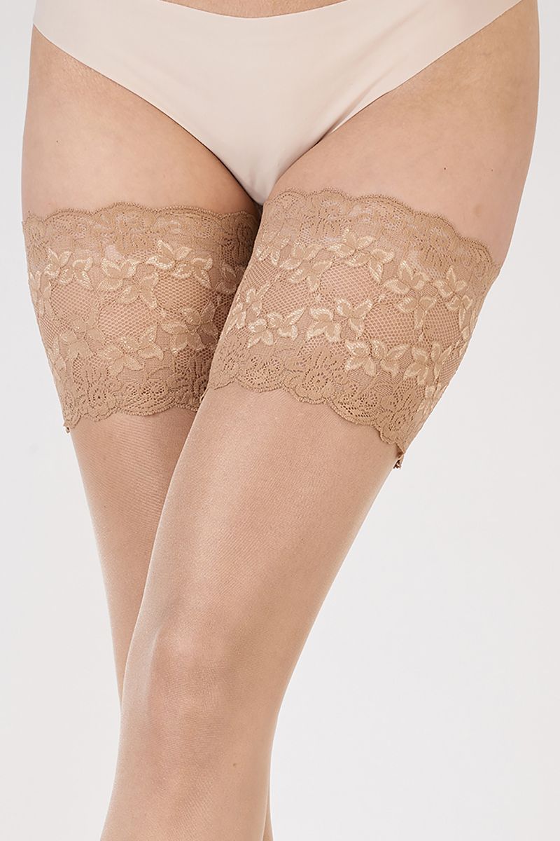 Чулки на силиконовой резинке с благородным легким блеском (шелковистые и износоустойчивые). Плотность - 15 ден.