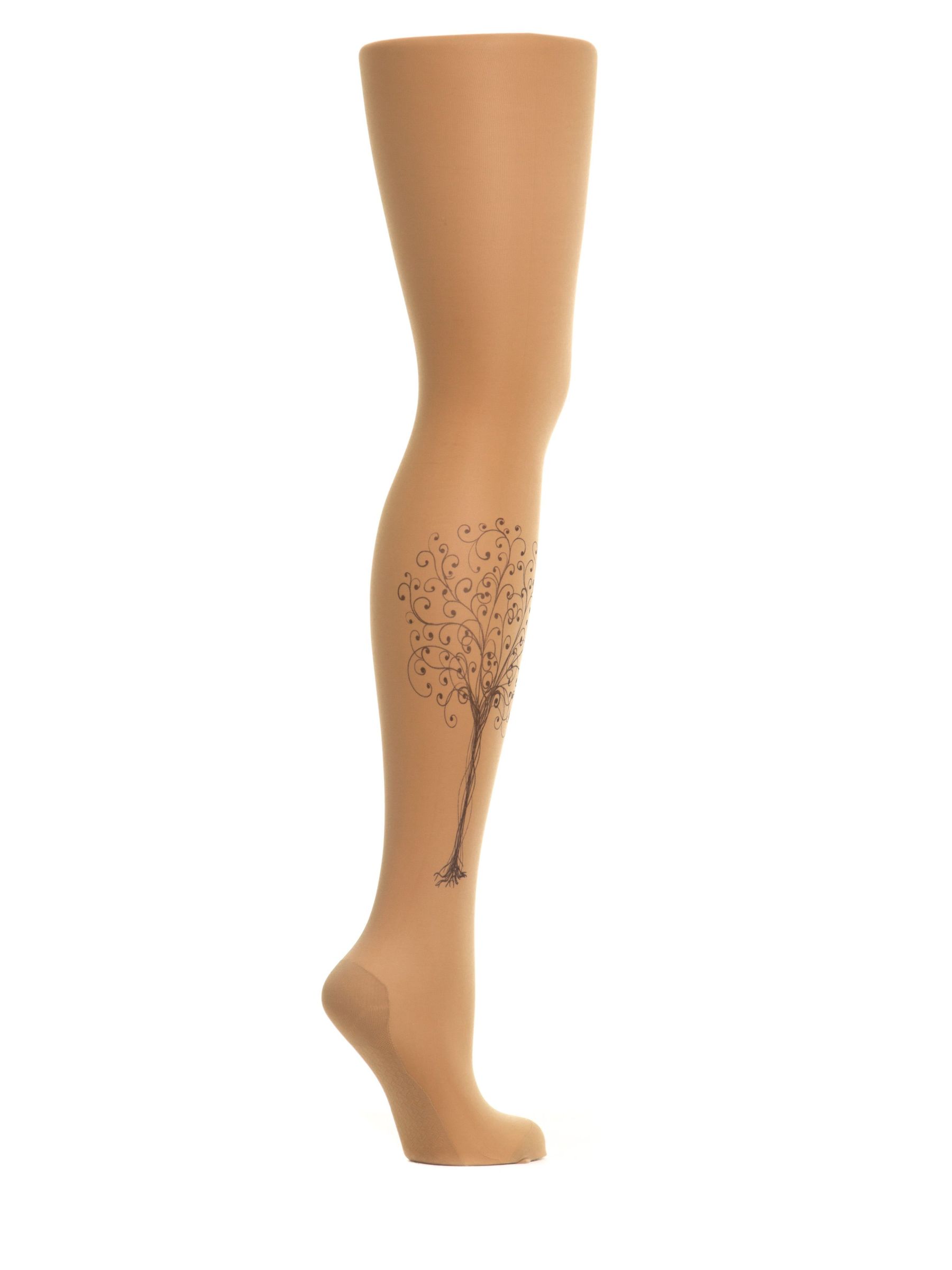 Колготки с принтом в виде деревца на правой ножке. Принт не стирается, не выгорает со временем. Можно стирать в стиральной машине. Крепкие, подойдут на рост от 145 до 180 см. Плотность - 40 ден.