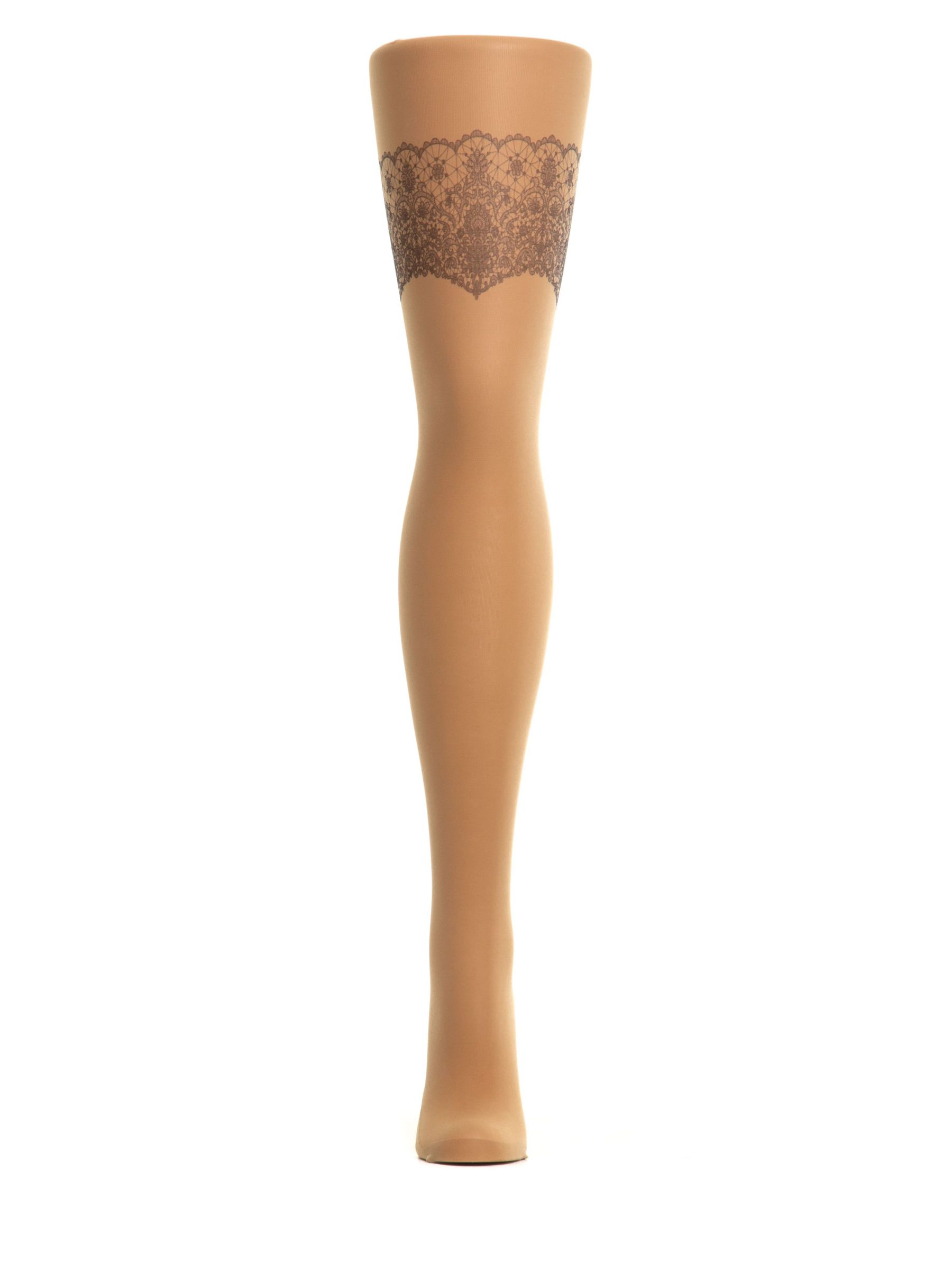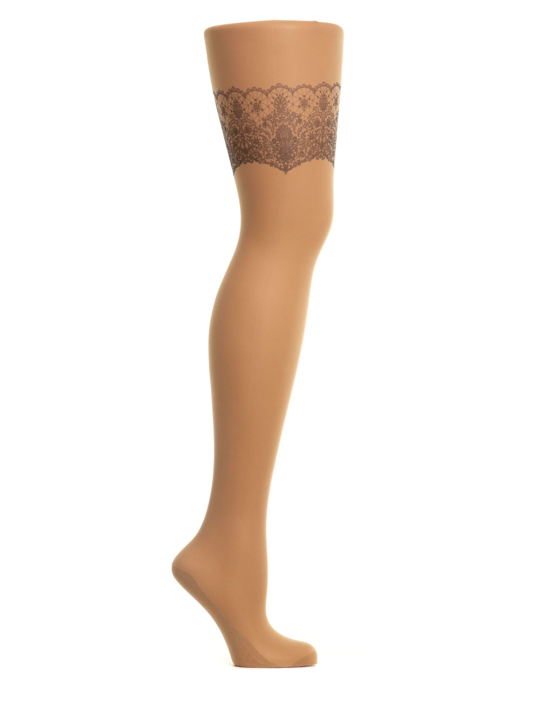 Колготки с имитацией кружевной резинки чулок на левой ножке