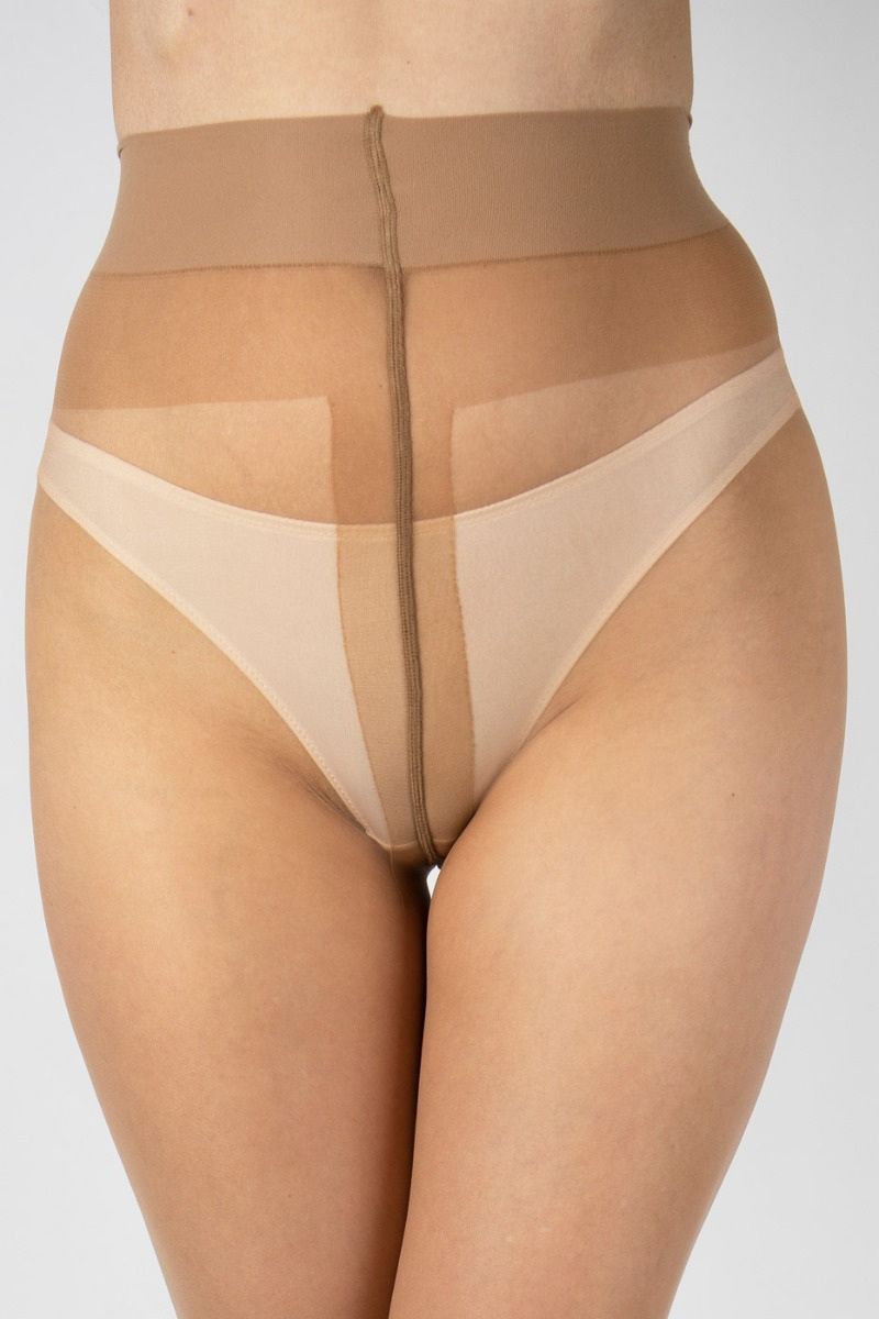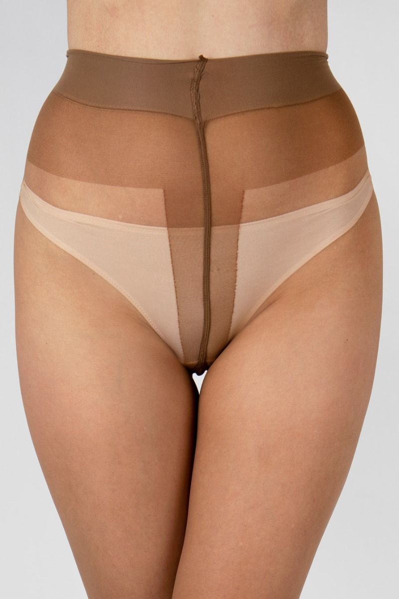 Колготки тонкие матовые, однородные по всей длине, плоский шов, прозрачный мысок, ластовица из хлопка. Плотность - 10 ден.