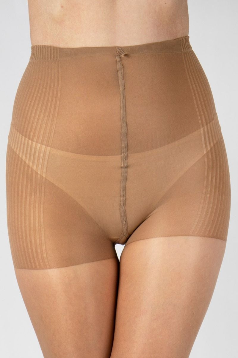 Колготки с блеском, корректирующие живот и бедра, прозрачный мысок, красивое плетение, ластовица из хлопка. Плотность - 10 ден.