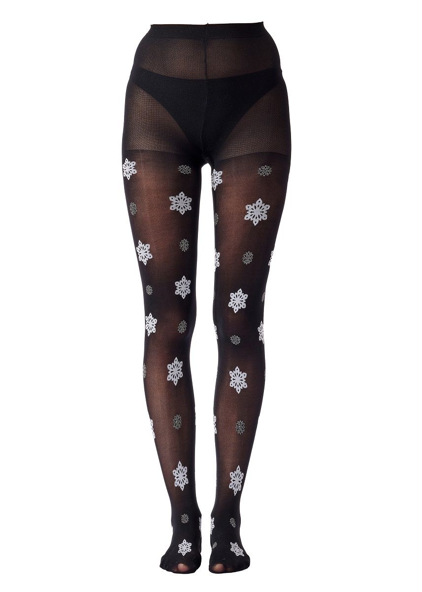 ОписаниеКолготки со снежинками, частично из люрекса. Плотность - 60 ден.