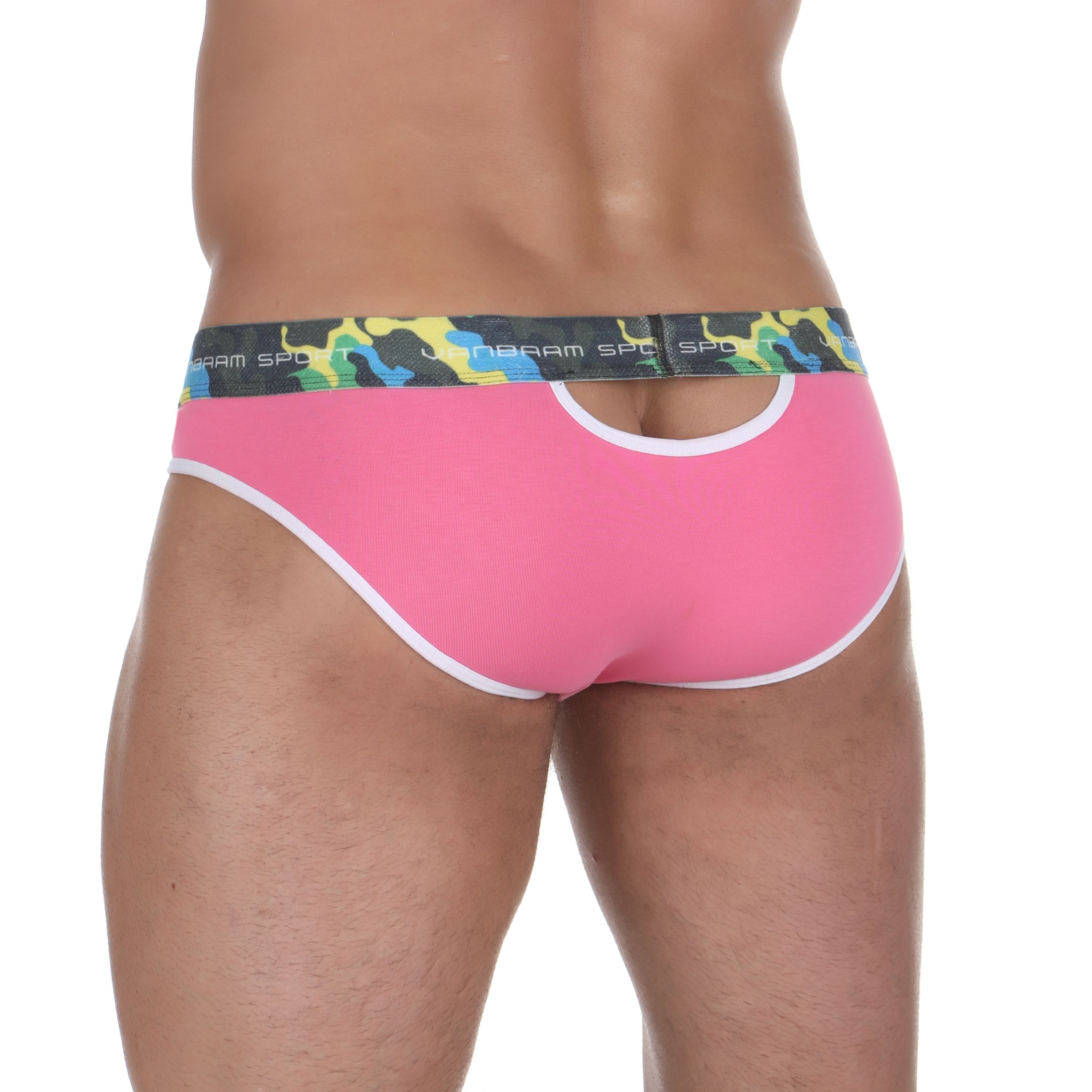 ОписаниеРозовые мужские трусы-слипы с пикантными вырезами под поясом.