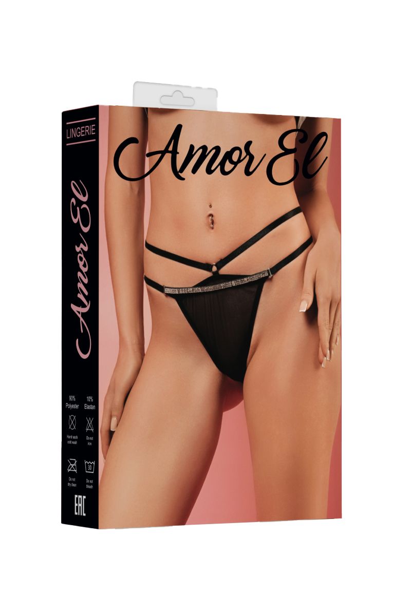 Трусики-танго Amor El выполнены из мягкой сеточки с эластичными лентами — классическая модель и посадка украшены дополнительной вставкой из страз. Украшение легко снимается при необходимости.