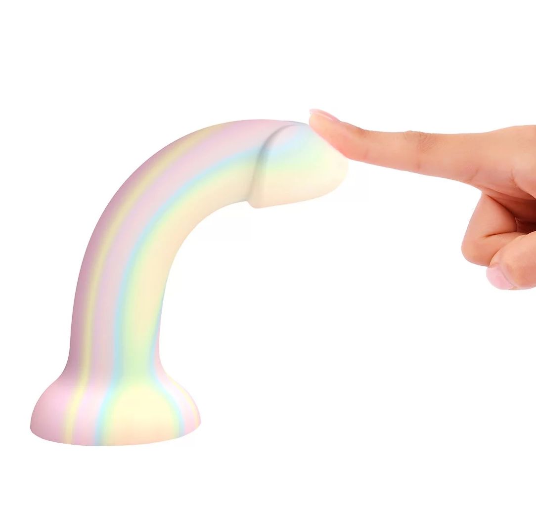Фаллоимитатор Fantasia - пастельные тона разноцветных полос, нежный и в то же время соблазняющий, перенесет вас в страну чудес. Плюс дополнительное преимущество фаллоимитатор Fantasia: он светится в темноте!