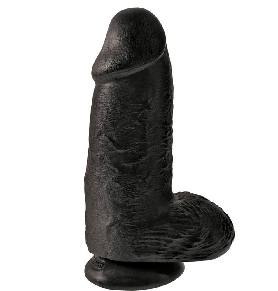 Толстый фаллоимитатор с мошонкой на присоске Pipedream King Cock Chubby черный