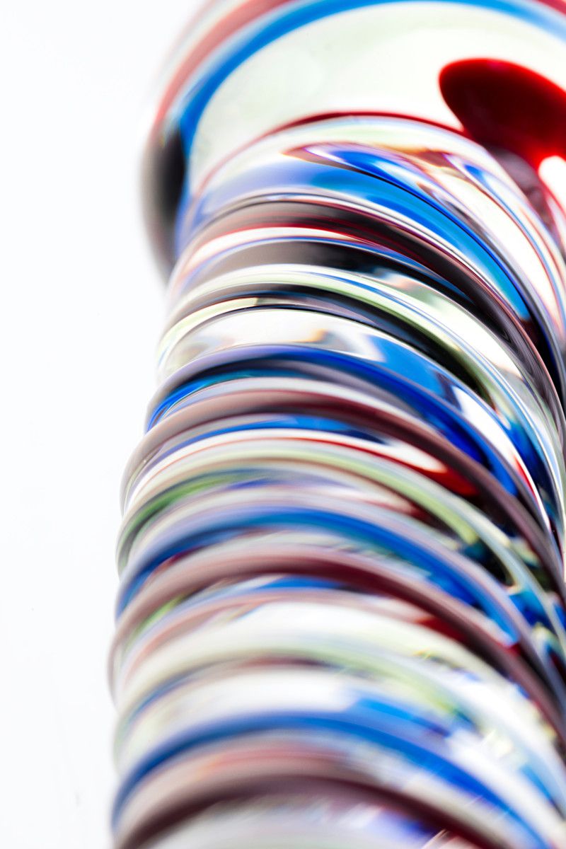 Стеклянный фаллос с разноцветными спиралями - 16,5 см.