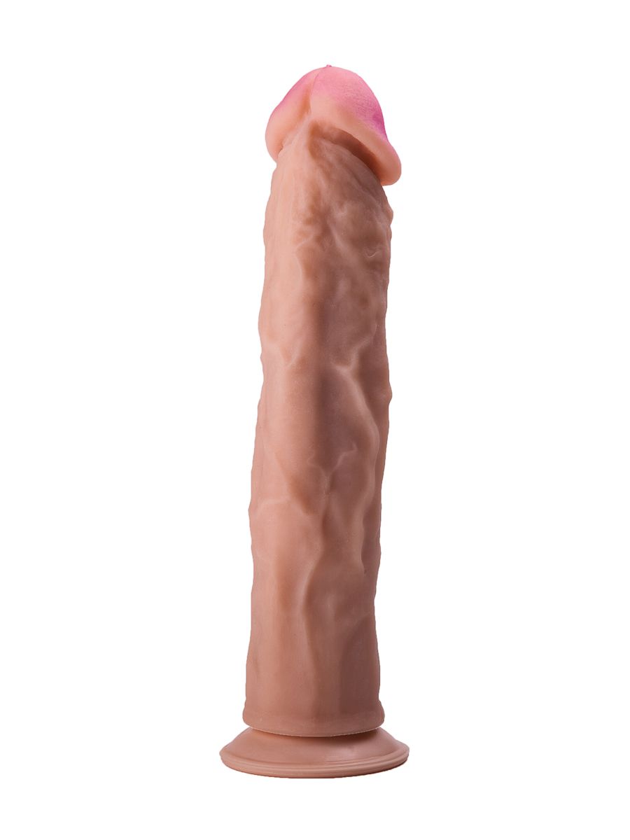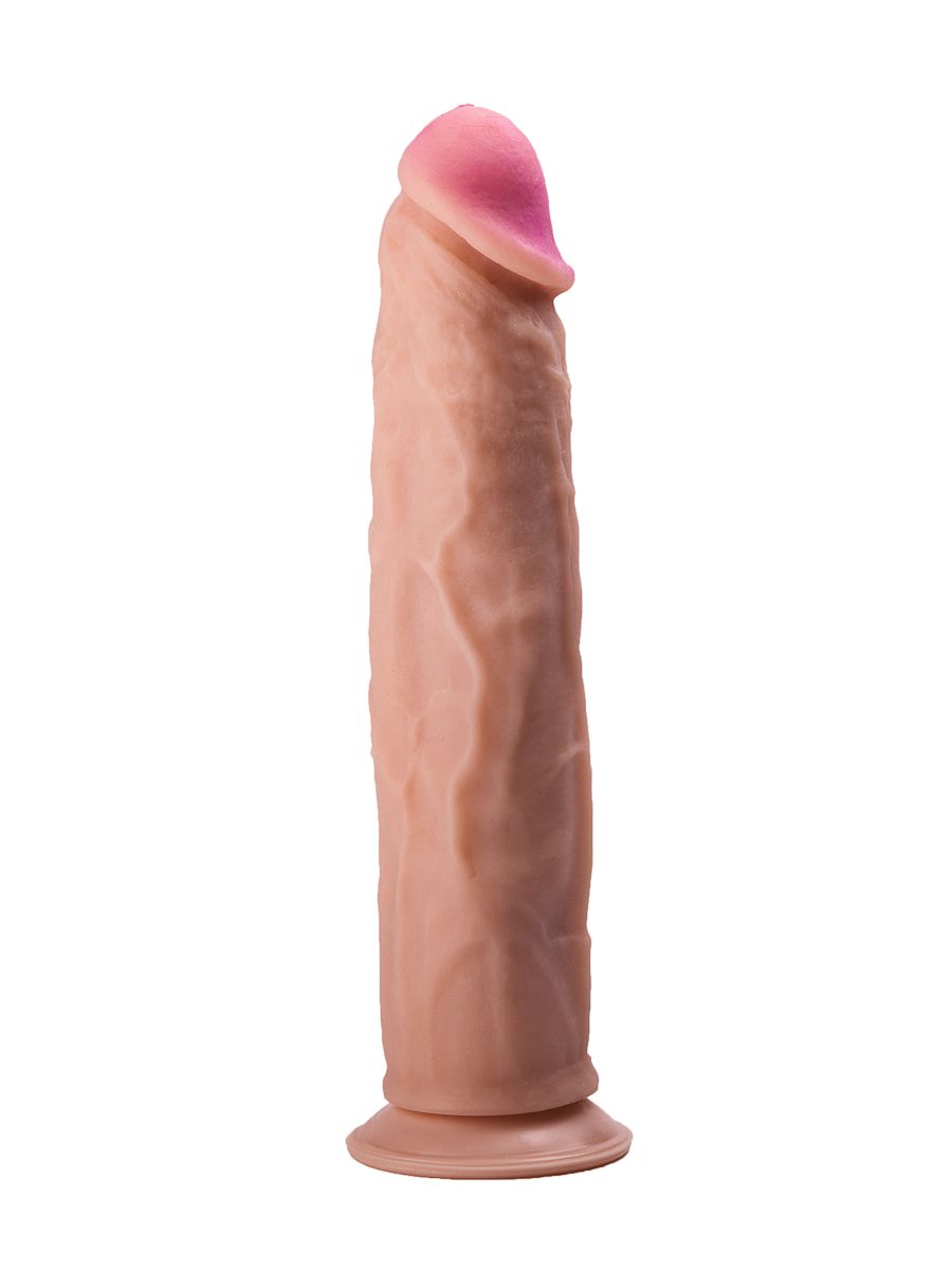 Телесный фаллоимитатор на присоске с большой головкой - 24,5 см.