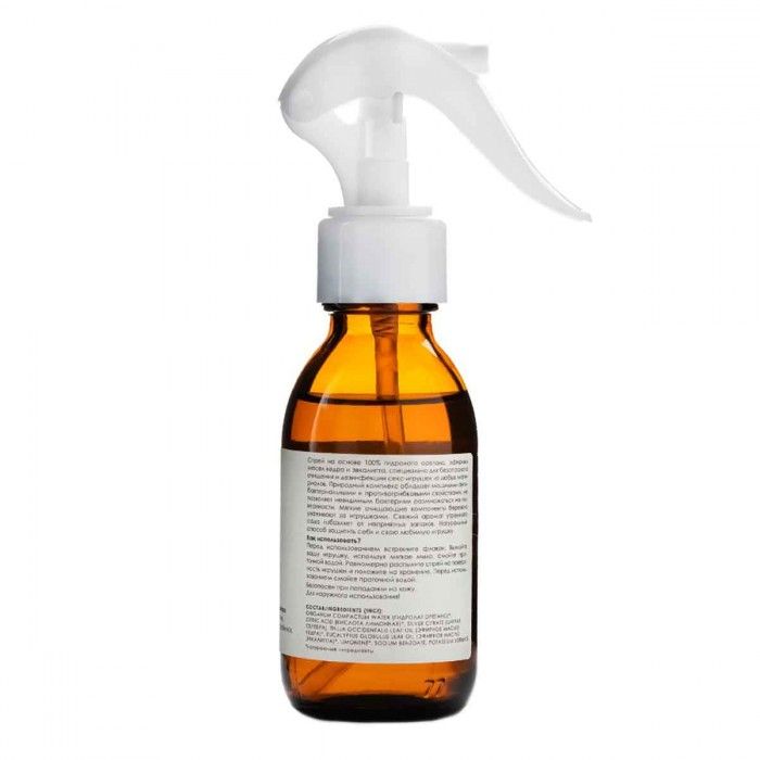 Спрей на основе 100% гидролата орегано, эфирных масел кедра и эвкалипта, специально для безопасного очищения и секс-игрушек, и менструальных чаш из любых материалов. Природный комплекс обладает мощными антибактериальными и противогрибковыми свойствами, не позволяет невидимым бактериям размножаться на поверхности. Мягкие очищающие компоненты бережно ухаживают за игрушками. Свежий аромат утреннего сада избавляет от неприятных запахов. Натуральный способ защитить себя и свою любимую игрушку. Только для наружного использования! Безопасен при попадании на кожу.