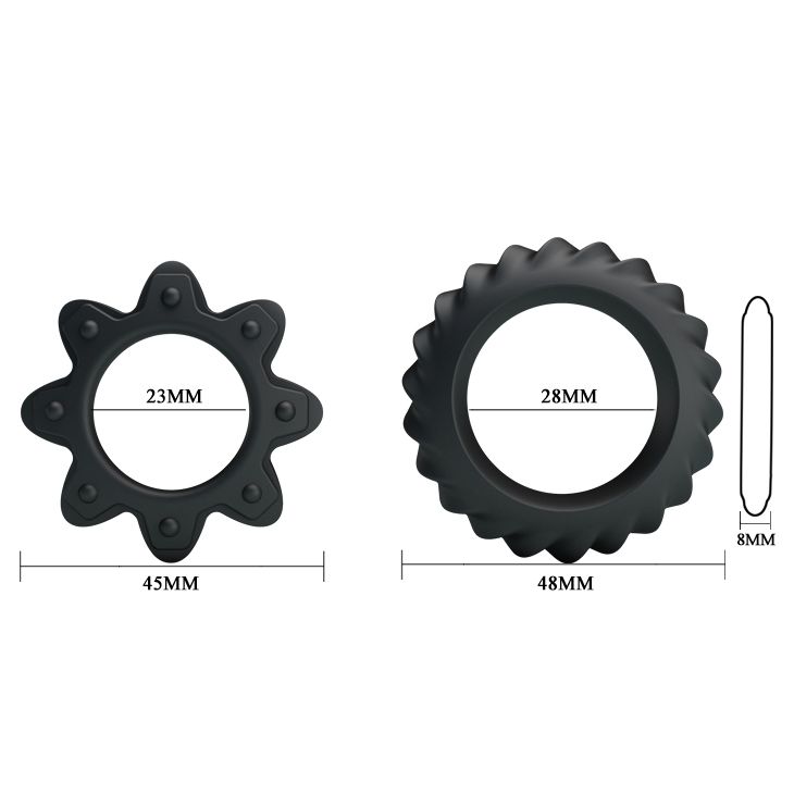 Набор эрекционных колец Flowering отлично подойдут для продления эрекции. Кольца выполнены из плотного шелковистого силикона и обеспечат надежное пролонгирование. Внешний диаметр большого кольца - 4,8 см., внутренний - 2,8 см.