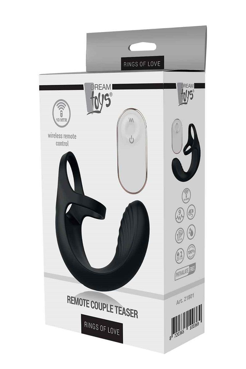 Этот гибкий стимулятор прекрасно подходит для использования во время интеркуляции. Стимулятор проходит вокруг полового члена с помощью растягивающегося кольца. Изогнутая часть уходит под мошонку, между яичками. Эта гибкая часть имеет ребра и вибрирует на промежности в 9 различных ритмах. Этот стимулятор можно использовать в душе или ванне, поскольку он водонепроницаем. Для удобства к нему прилагается беспроводной пульт дистанционного управления для управления вибрациями и магнитный USB-кабель для подзарядки стимулятора.