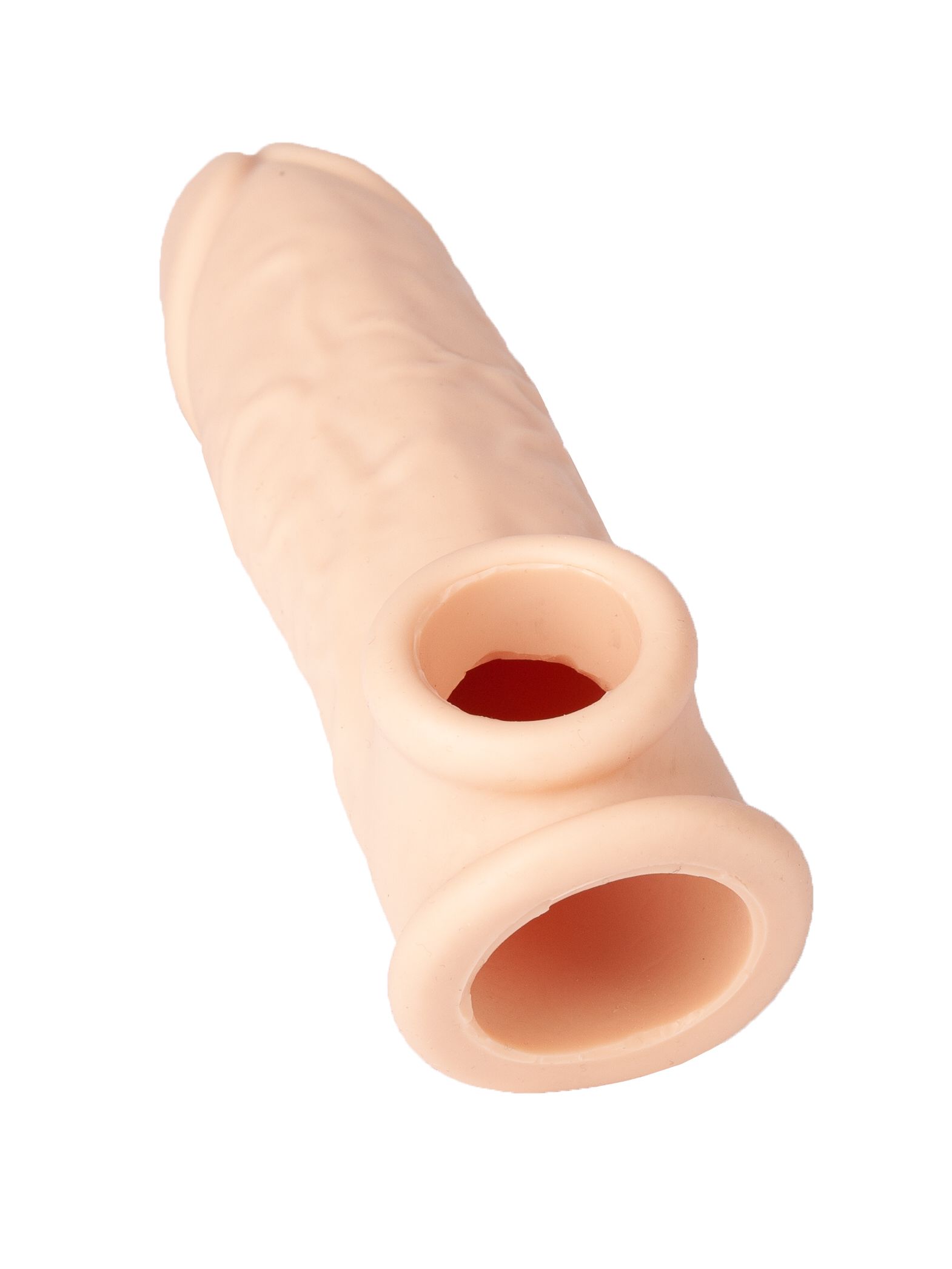 Телесная удлиняющая насадка с отверстием для мошонки - 18,5 см.